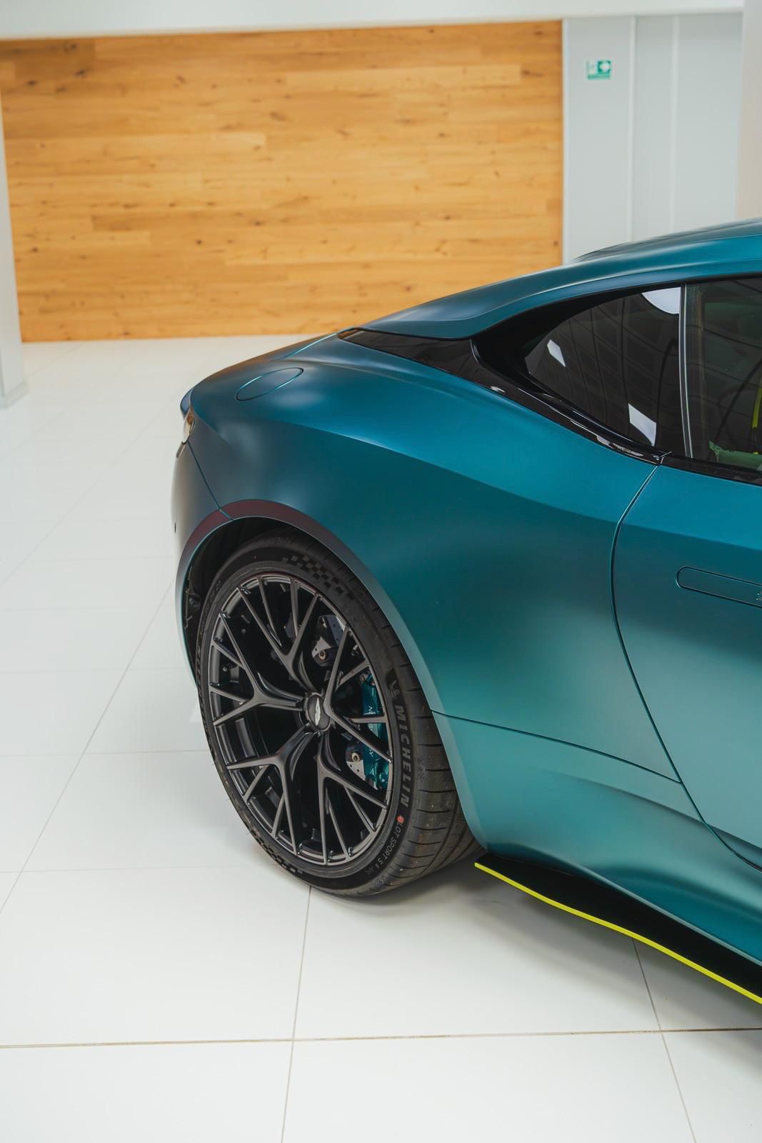 Iconic Aston grille, sculpted bonnet vents and aero kit with lime accents