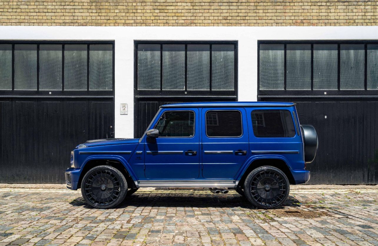 • Deep Sapphire Blue factory paint contrasted by gloss-black Brabus elements and “B” grille badge.