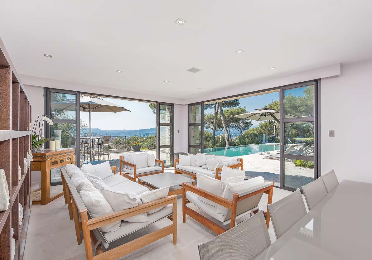 12 guests | 7 doubles (one convertible office) | 8 ½ | 660 m² | Lush gardens in Super-Cannes hills |