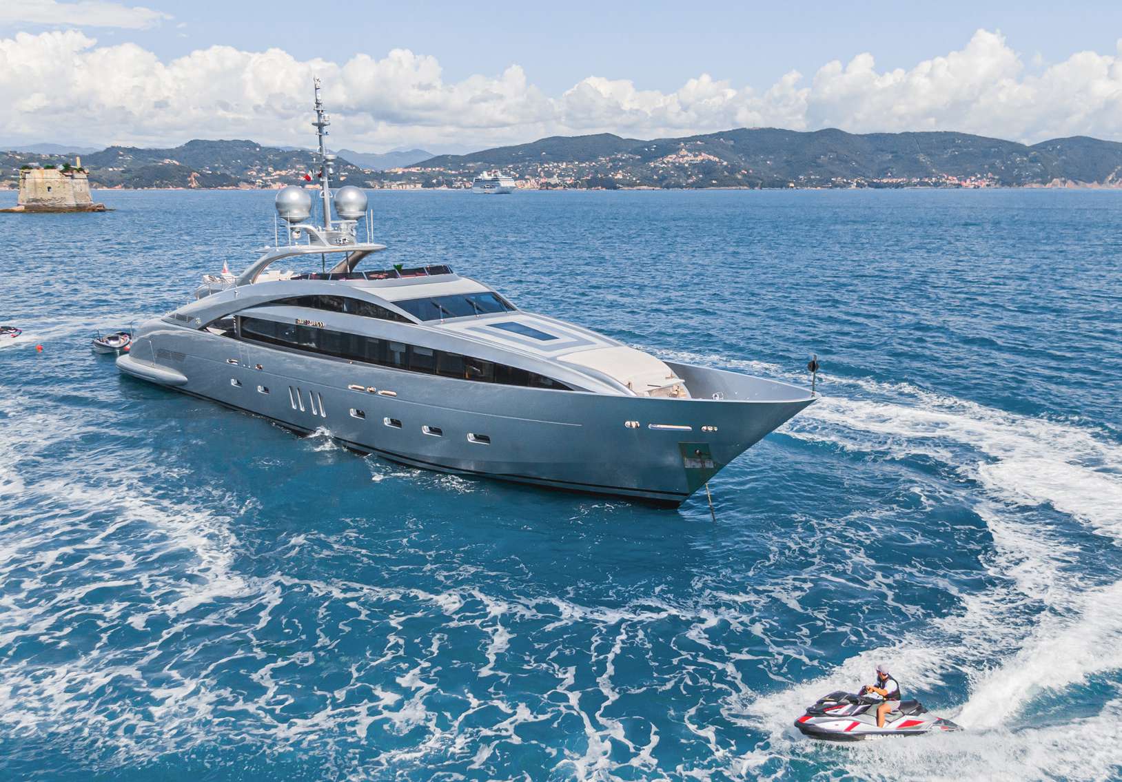 • Island Hops in Style: Cruise 19 kn between chic ports, arrive with hull-side doors down and the tender ready.