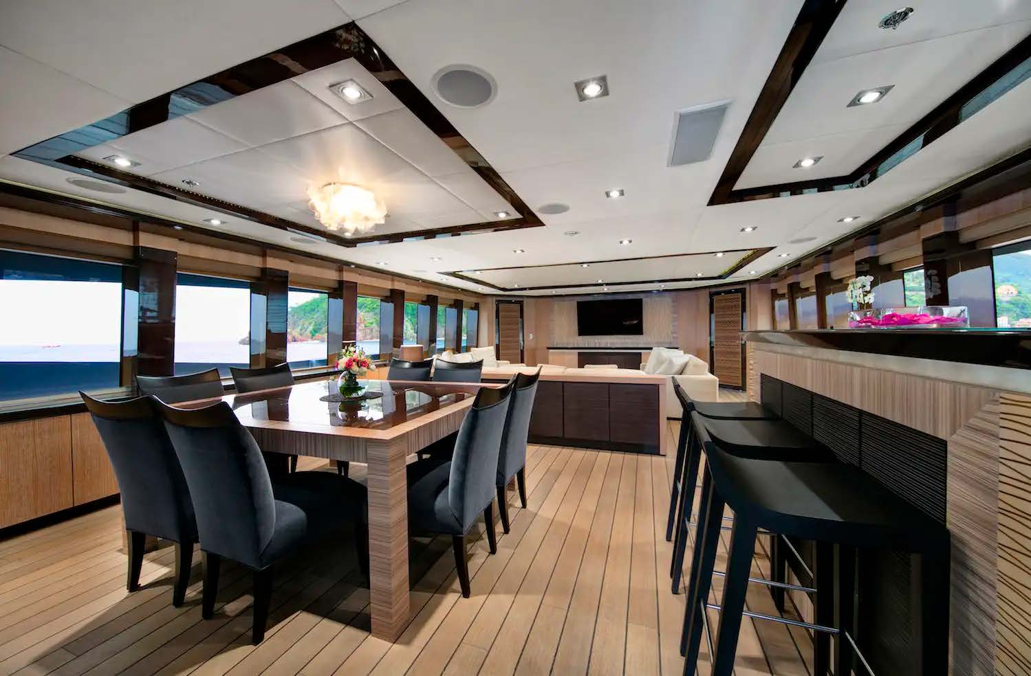 Cinema-Style Windows | Full-height, dark-tinted glass floods the main salon with light—no mullions to interrupt the view. |