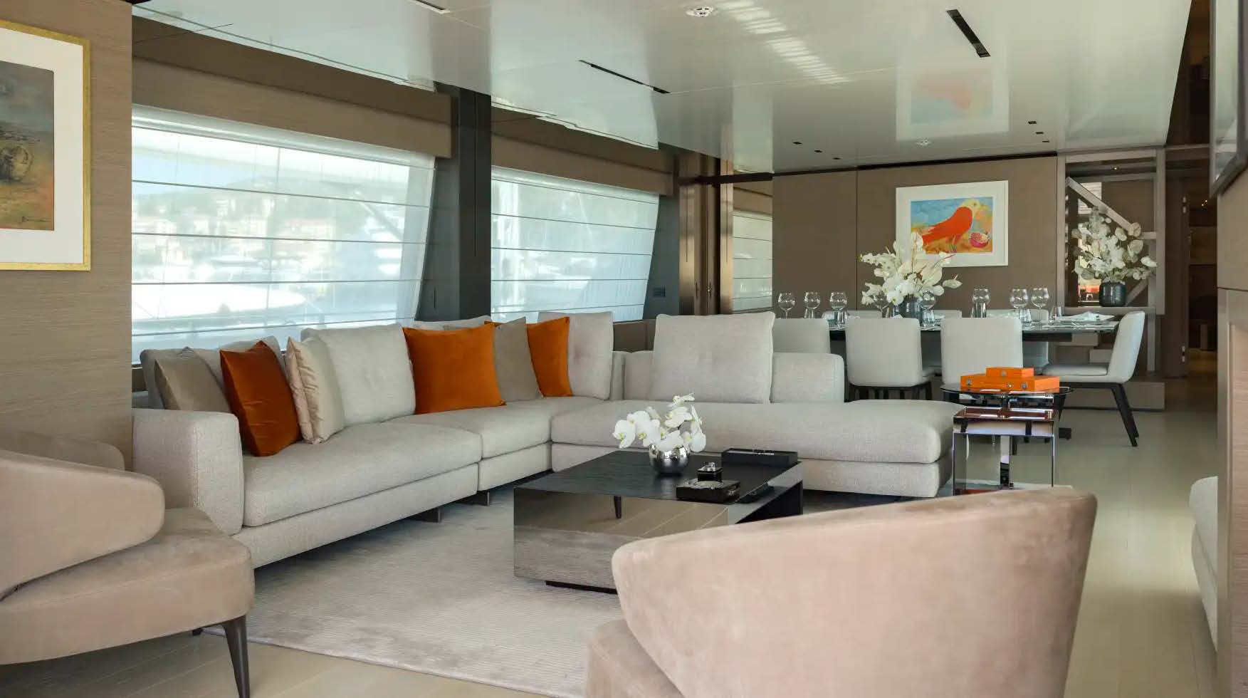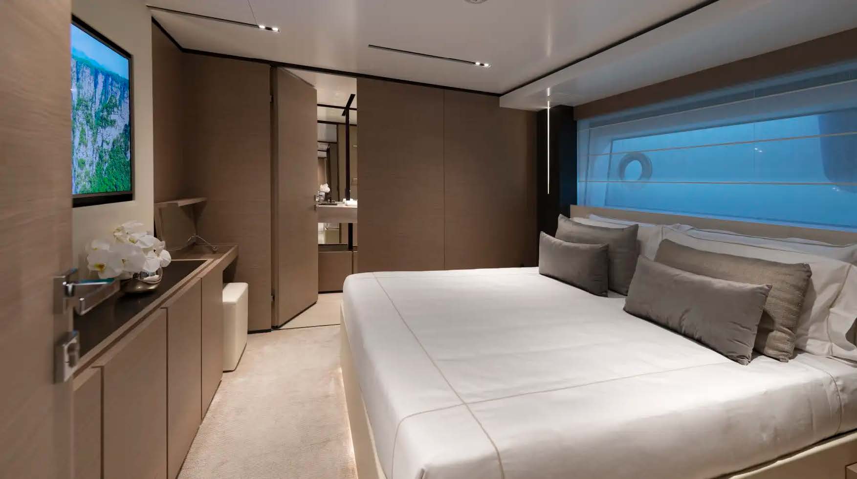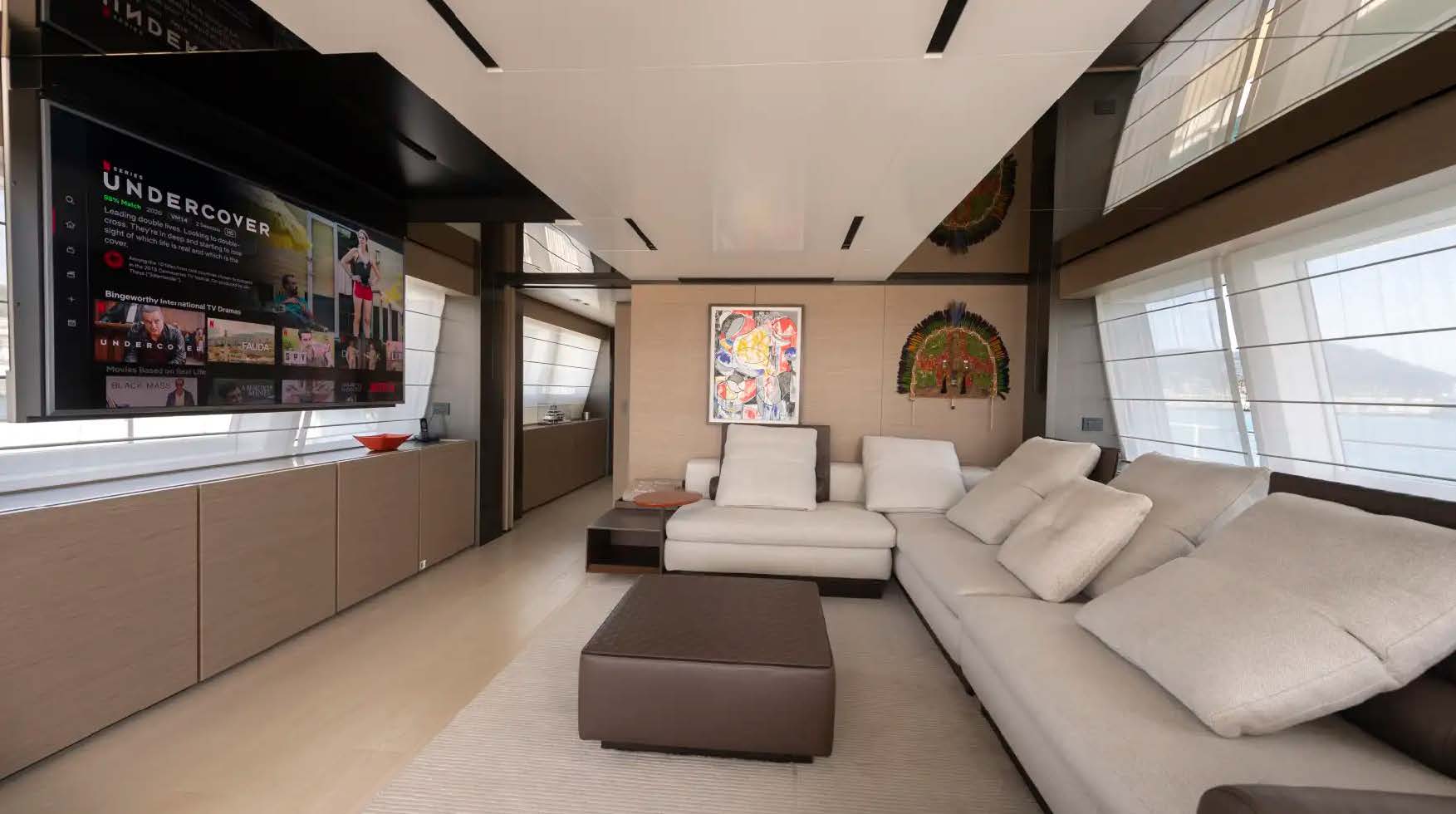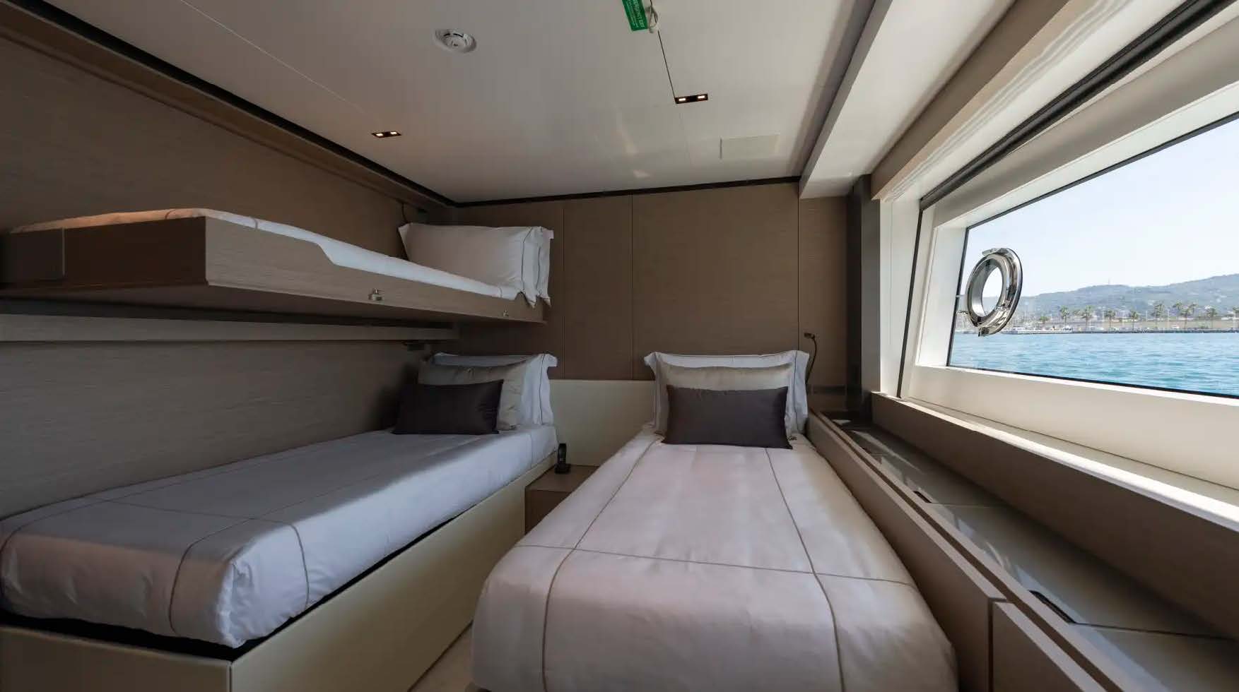 For play, she carries stabilisers for smooth cruising, a fast tender, gym equipment, paddleboards, kayaks, inflatable toys and a full quiver of watersports gear—perfect for families and friends seeking versatile adventure without compromising luxury.